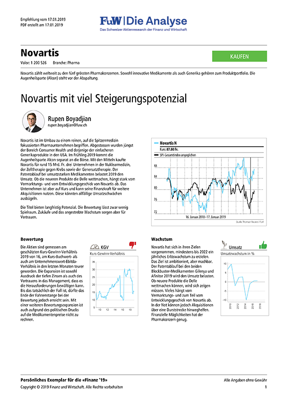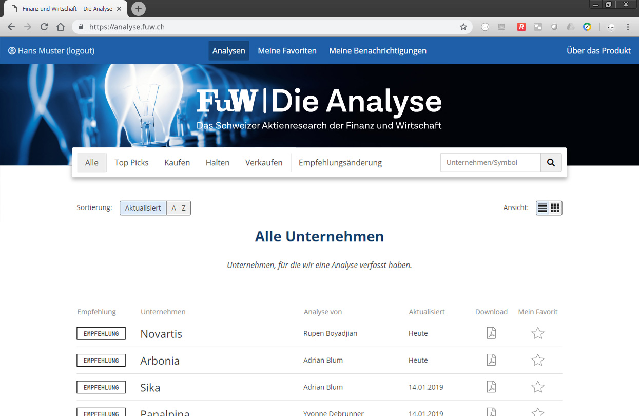 Die Analysen werden von der erfahrenen Redaktion der «Finanz und Wirtschaft» erstellt.